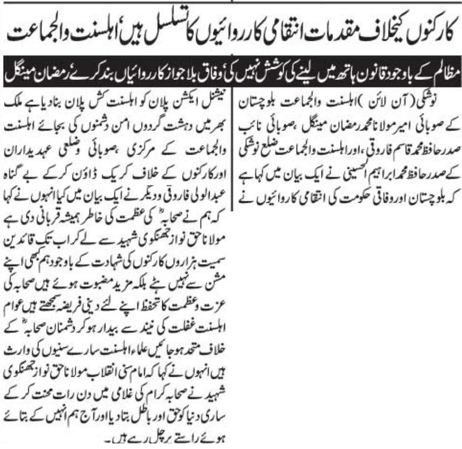 راولپنڈی: اہل سنت و الجماعت (اے ایس ڈبلیو جے) راولپنڈی چیپٹر کے سابق صدر مفتی تنویر عالم فاروقی کو مذہبی منافرت پھیلانے پر 6 ماہ قید اور 50 ہزار روپے جرمانے کی سزاسنادی گئی ہے.