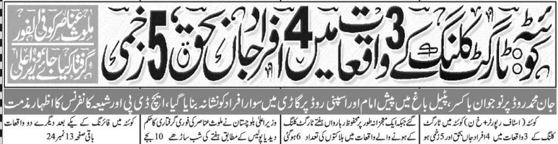 کوئٹہ شہر میں فائرنگ کا پہلا واقعہ سنیچر کی شام اسپنی روڈ پر پیش آیا۔