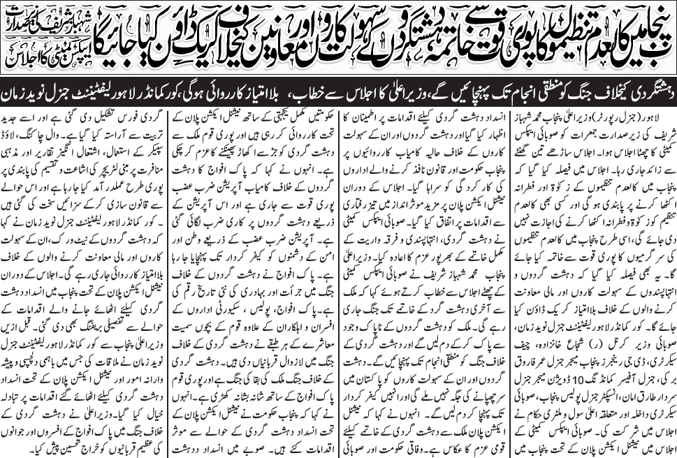 پنجاب میں کالعدم تنظیموں کا پوری طاقت سے خاتمہ اور دہشتگردوں کے سہولت کاروں اور معاونین کے خلاف کریک ڈاؤن کیا جائیگا (شہباز شریف)