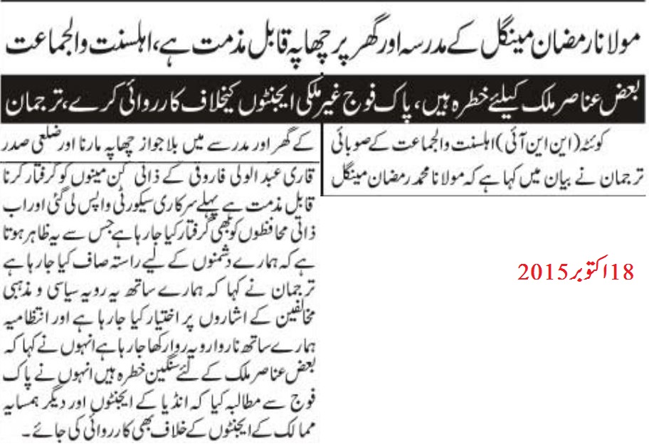 کوئٹہ میں ایک پریس کانفرنس سے خطاب کرتے ہوئے بلوچستان کے وزیر داخلہ میر سرفراز بگٹی نے بتایا کہ آپریشن ضرب عضب کی کامیابیوں کے بعد القاعدہ نے اپنے نیٹ ورکس کو بلوچستان کے سرحدی علاقوں میں منتقل کرنے کا منصوبہ بنایا تھا۔