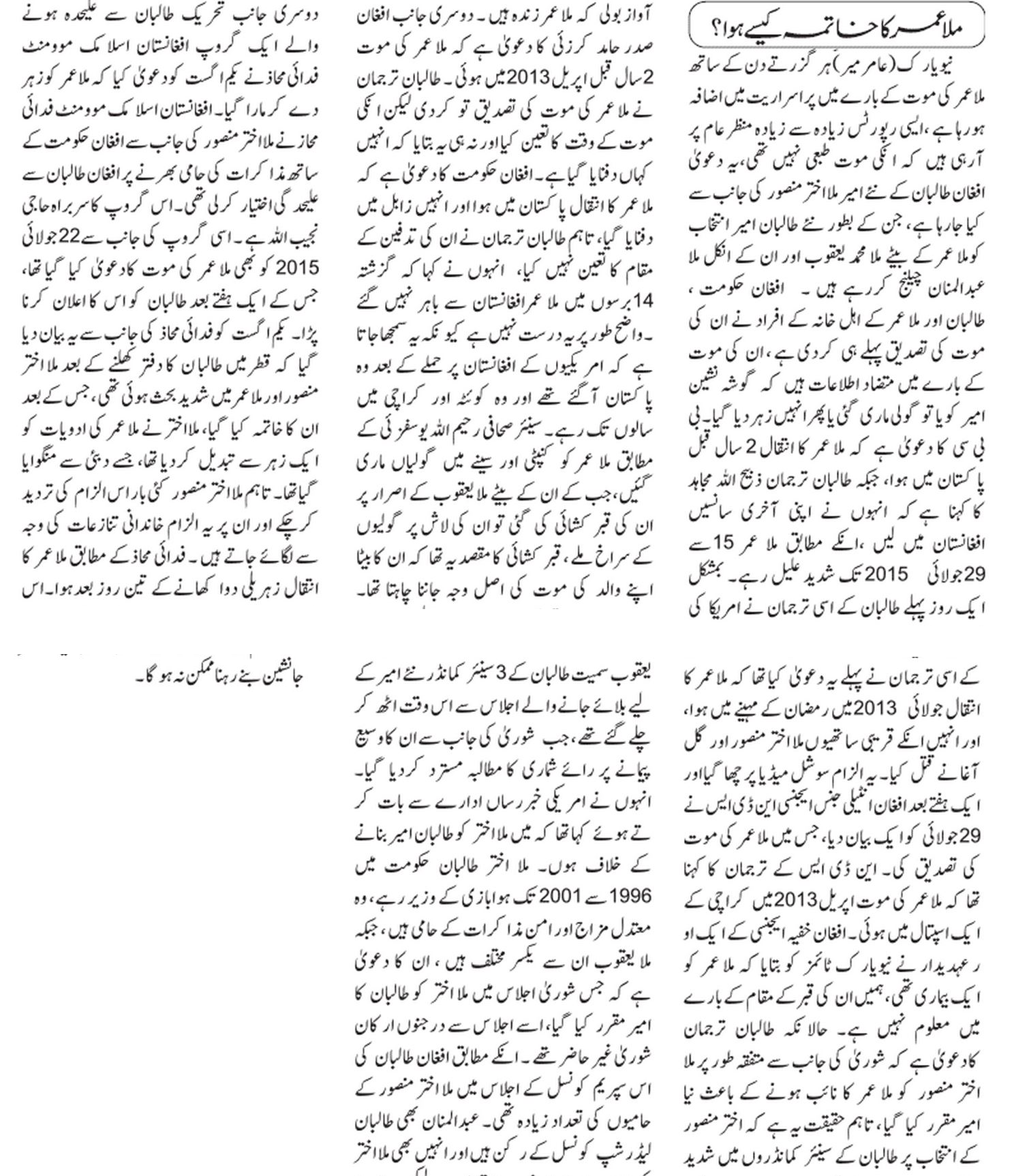 افغان طالبان کے نئے امیر ملا اختر منصور کی مخالفت کرنے والا ملا عمر کا بیٹا قتل